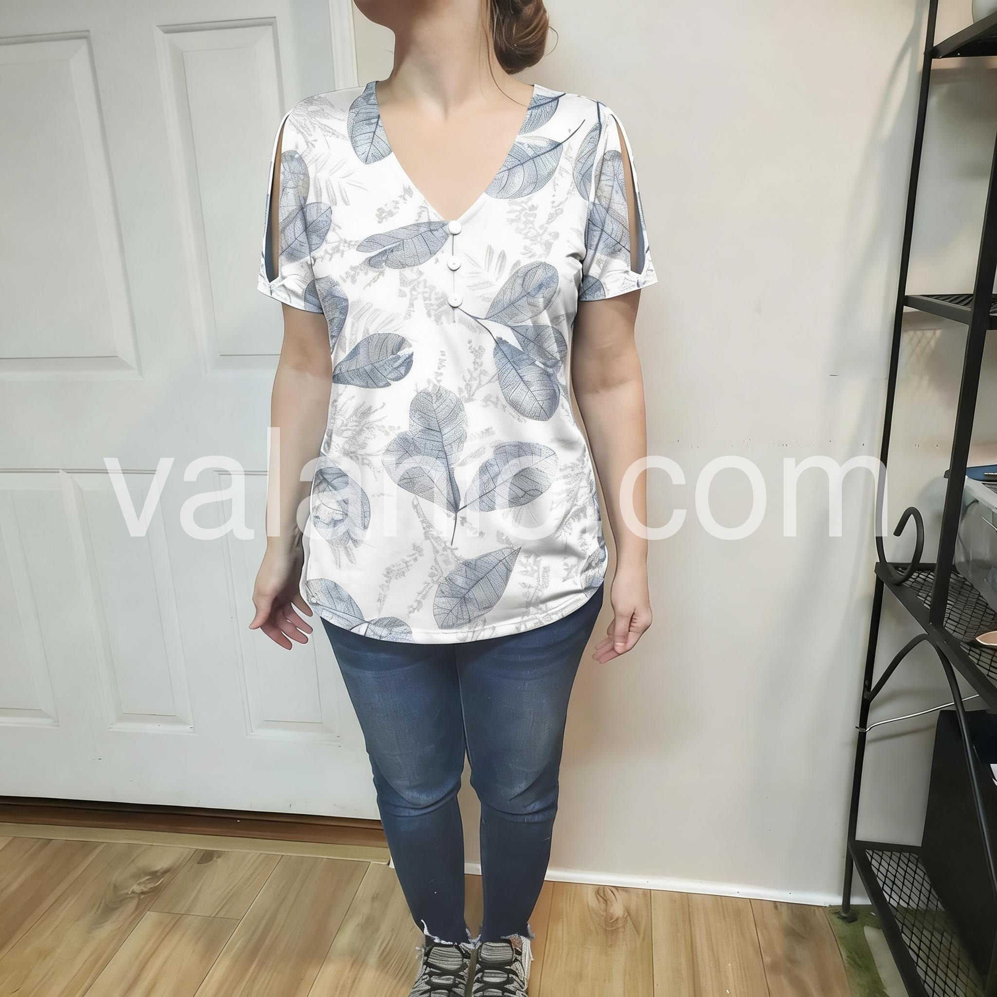 • Neckline: V-neck