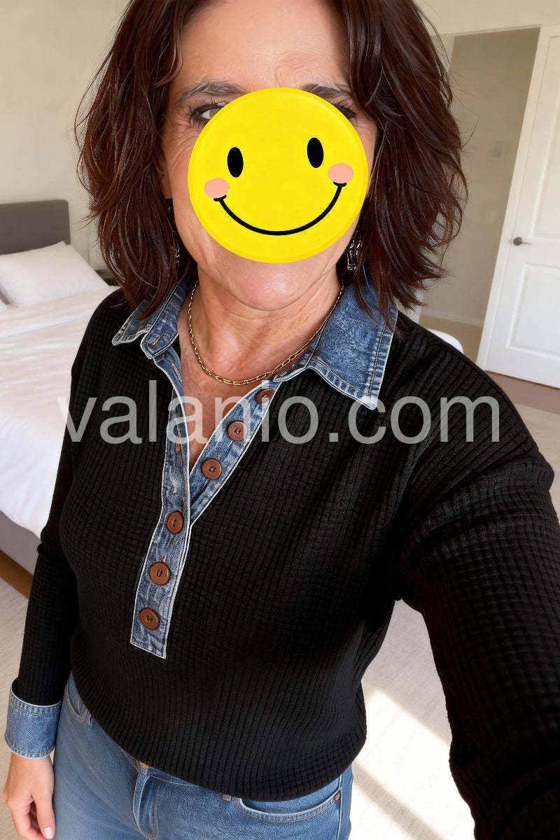 This long-sleeve top features a classic denim collar and a button-front design, combining timeless style with practical comfort. Its versatile look pairs well with both casual and smart-casual outfits, making it a reliable choice for year-round wear. Crafted for ease of layering, this top offers a polished finish while maintaining breathability and movement.
