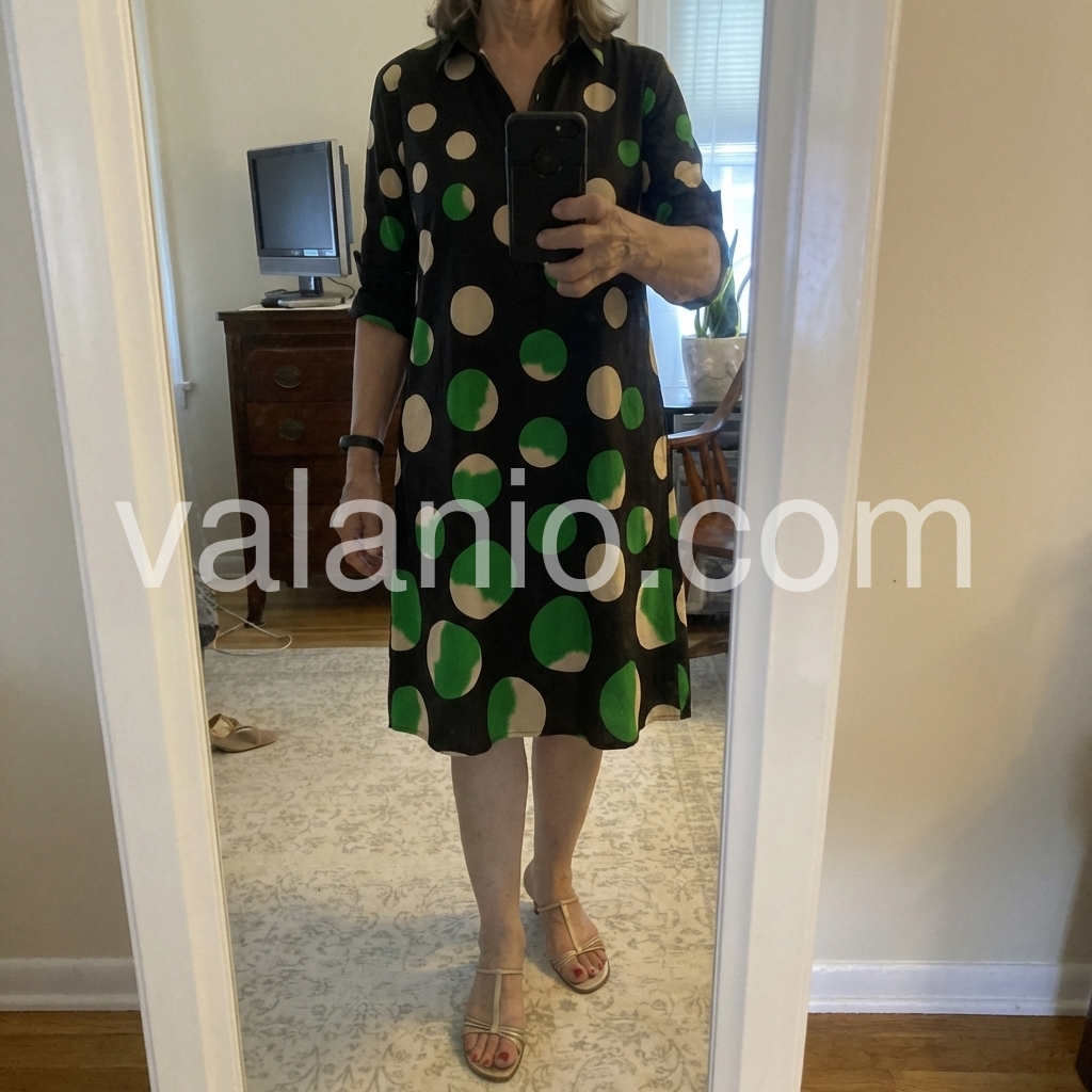 The gradient effect on the polka dots is such a fun and artistic touch. It makes the dress look like it came from an expensive boutique. The fit is incredibly comfortable and the half-button front is very flattering.