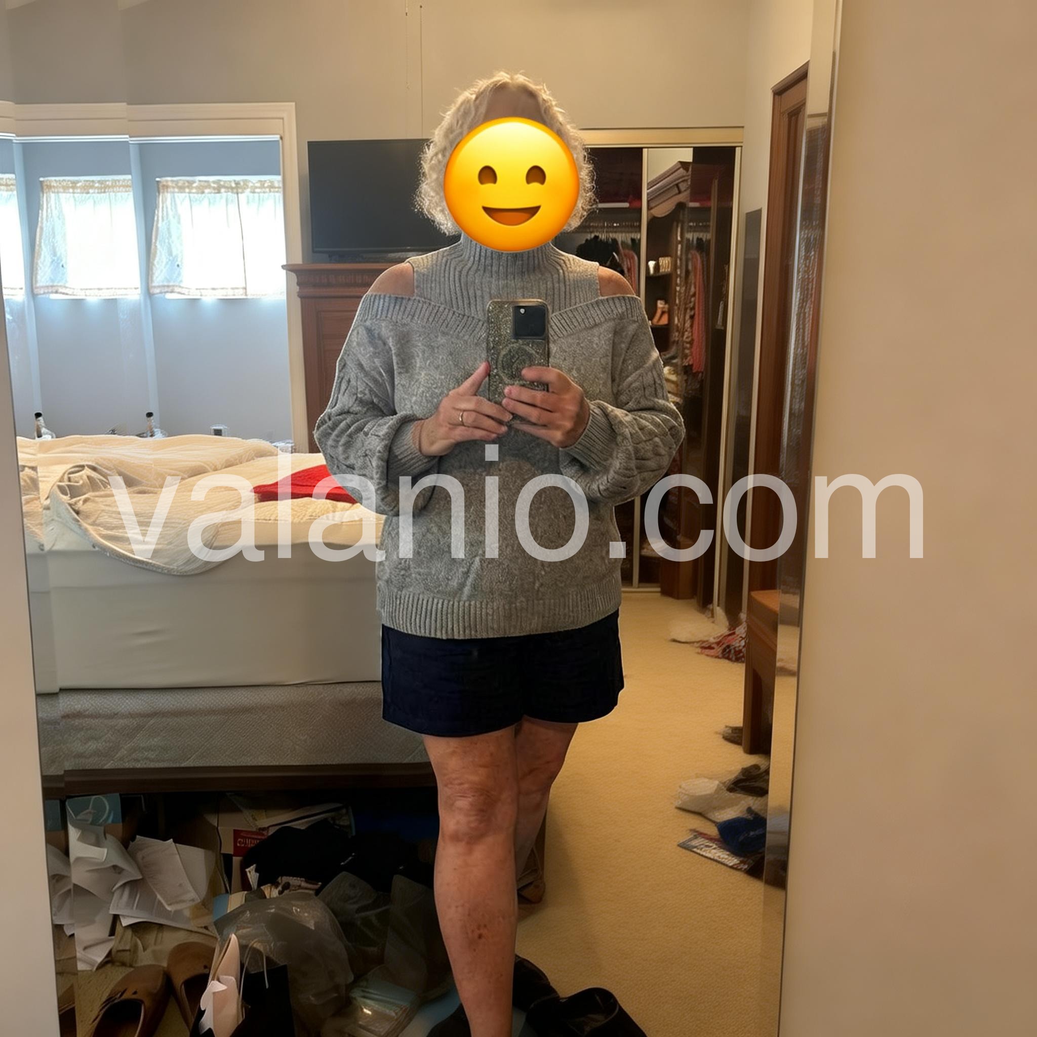 This is a great sweater! Very soft and comfortable with a good length and easy fit…not too loose not too tight. Luv it!