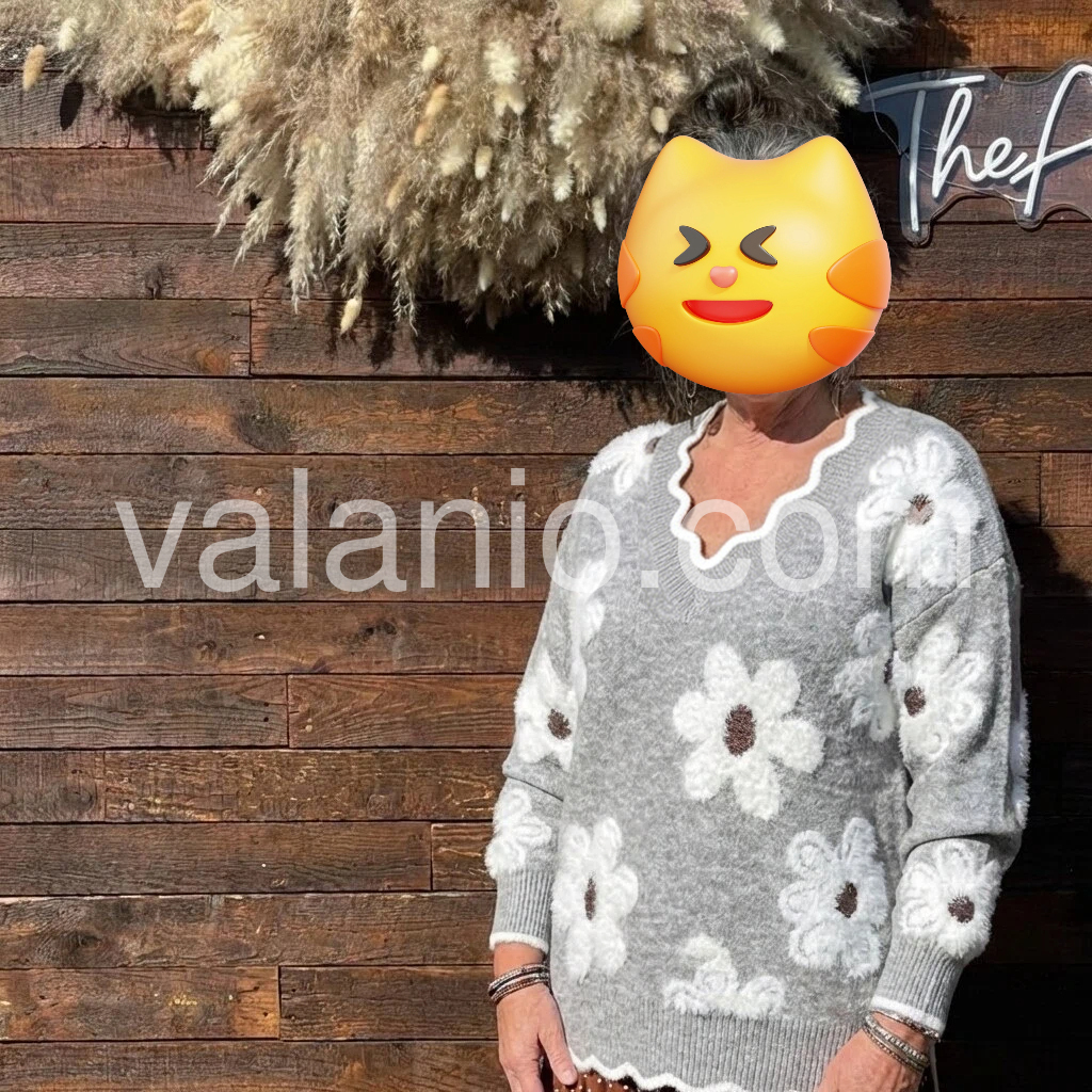 This Grey V-Neck Floral Print Sweater will keep you fashionably warm all season. With its classic v-neck design and floral print, this sweater has the perfect combination of style and comfort. Perfect for any occasion, this sweater is sure to keep you looking stylish.