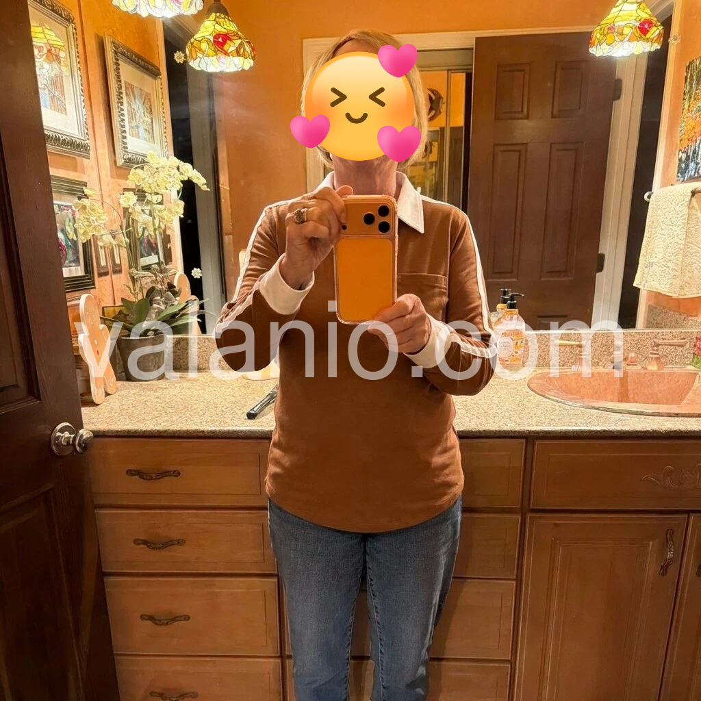 Absolutely adore this long-sleeve polo! The warm brown color is so cozy and autumnal, and the white contrast details make it stand out from basic tops. The chest pocket is a cute touch, and the fabric is durable and holds its shape well after washes. It’s true to size, and the long sleeves are perfect for cooler weather. I’ll be wearing this all season long!