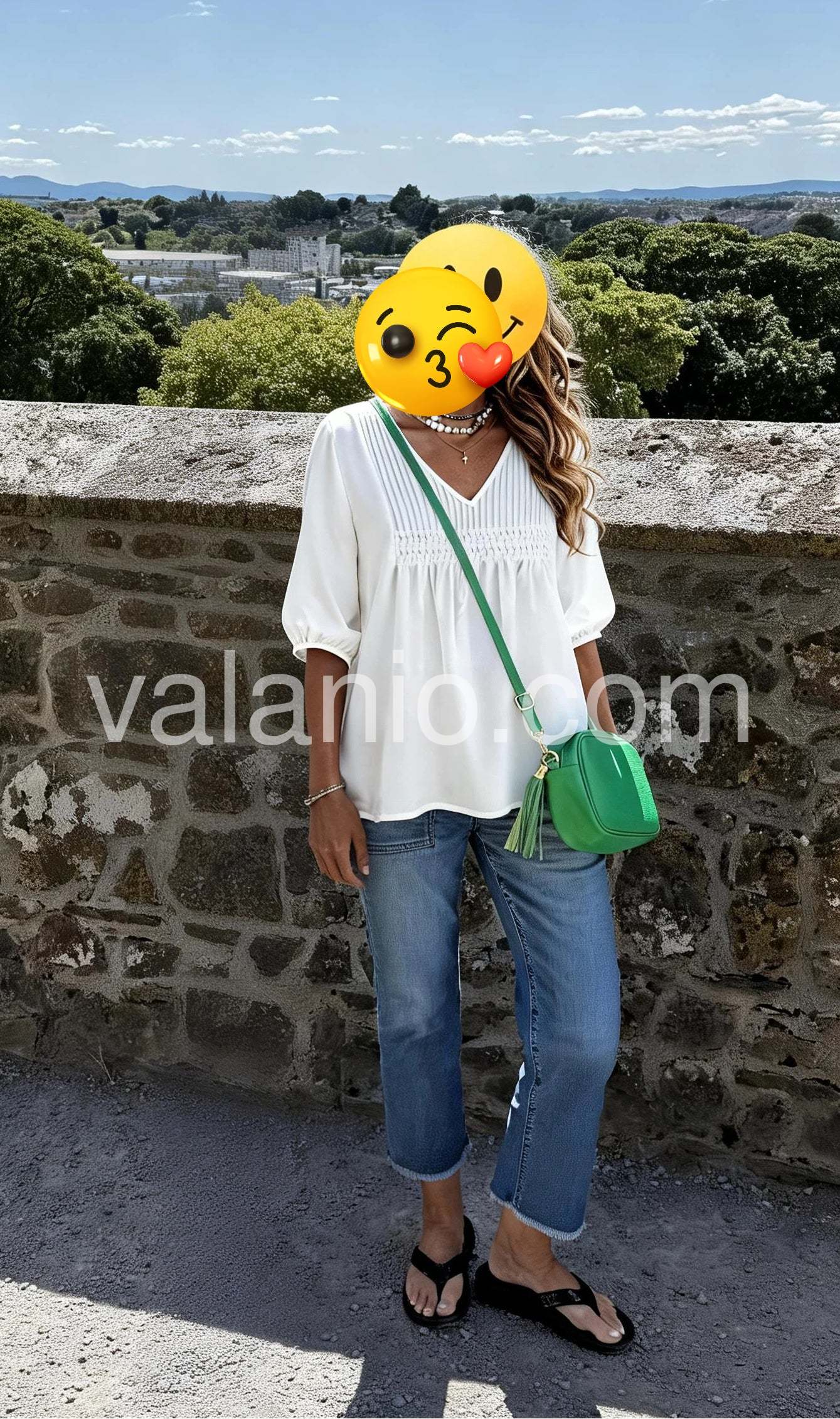 Such a great staple piece for my wardrobe. I can wear it tucked into a skirt for the office or loose with jeans as shown in the picture. It washes well and does not wrinkle easily.