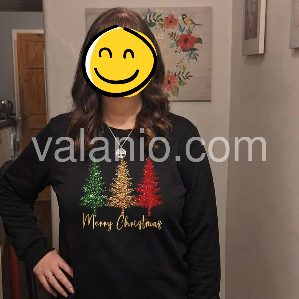 I wanted something cozy and cute for the holidays, and this sweatshirt nailed it. The black base makes the colorful tree lights stand out perfectly, and the design looks cheerful rather than dull. When I tried it on, it felt comfortable right away, and the sleeves are a great length for layering. I can’t wait to wear it during Christmas week.