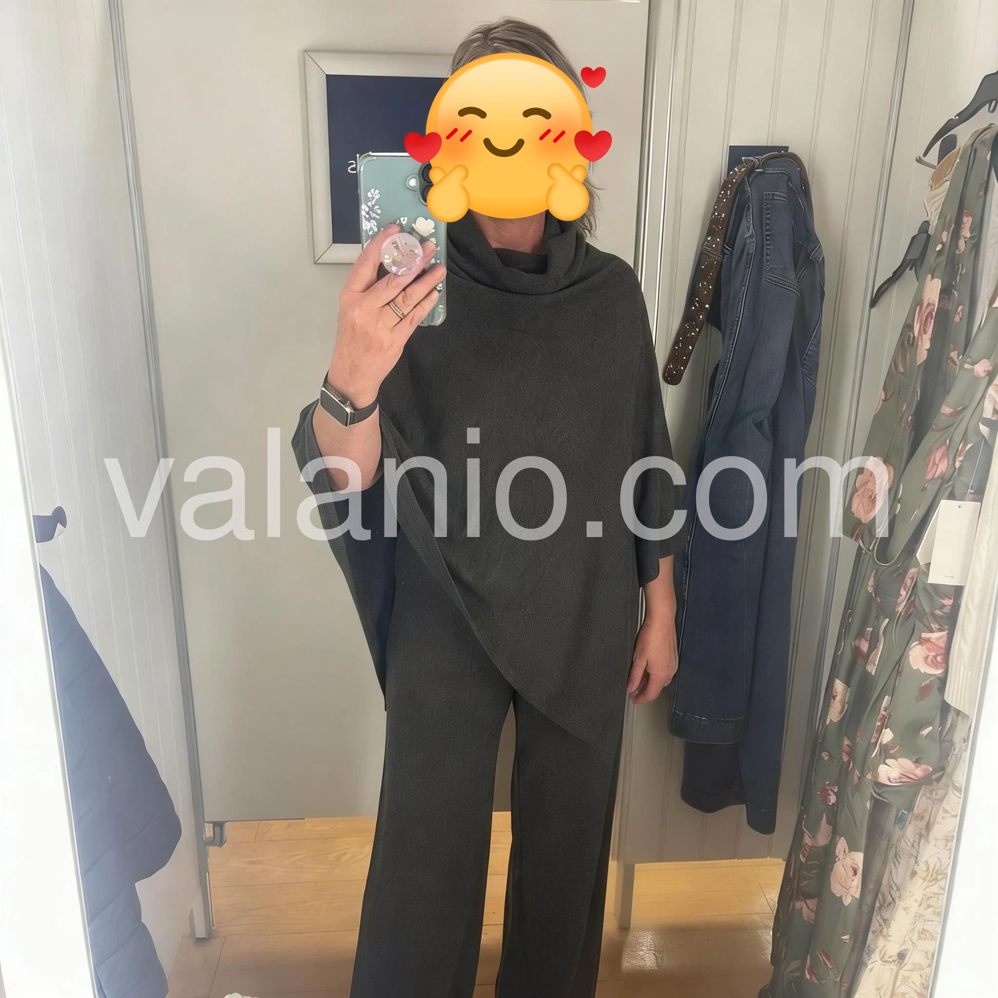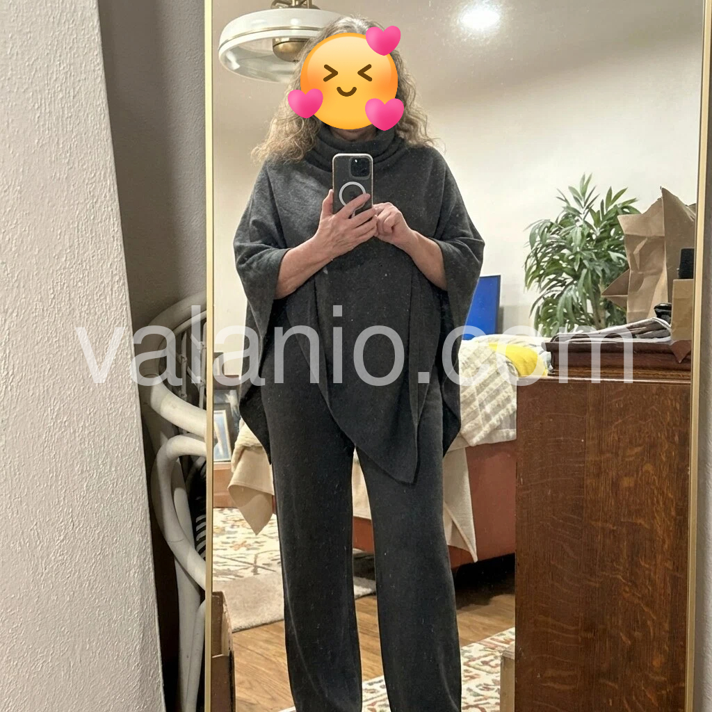 This set is chef’s kiss! So soft and cozy, I basically live in it now. The cowl neck poncho is so chic and the wide-leg pants are so flowy I feel like I’m walking on clouds. Love that it’s stylish enough to run errands in but comfy enough to nap in. 10/10!