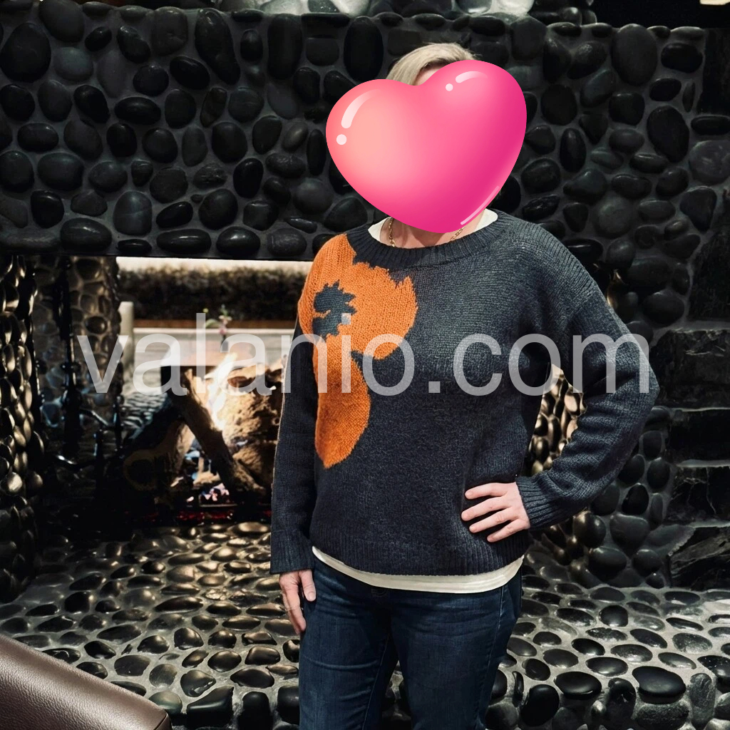 This sweater is adorable. The material feels warm and comfortable, and the knit looks well made. The crew neck sits nicely, and the graphic on the front really pops. Easy to pair with jeans and perfect for everyday or holiday outings.
