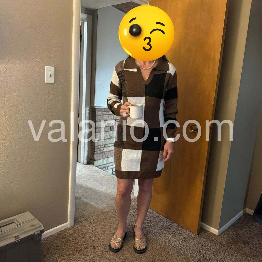 Chic checkered knit dress -- cozy yet polished. The color block pattern is stylish and versatile for everyday wear. Paired with pearl necklace and gold sandals, it looks effortlessly elegant. Comfortable fit and great quality for the price. Smooth online order, fast shipping, and responsive customer support. Highly recommended.