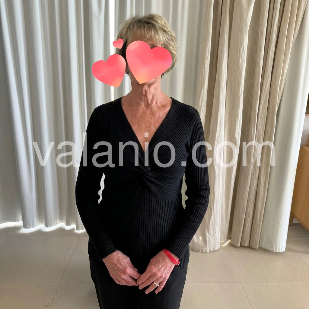 This is such a stylish and comfortable knit top. The twist knot detail at the front and the V-neck make it look elegant without trying too hard. The ribbed texture looks great and the fabric has a nice stretch. Highly recommend.