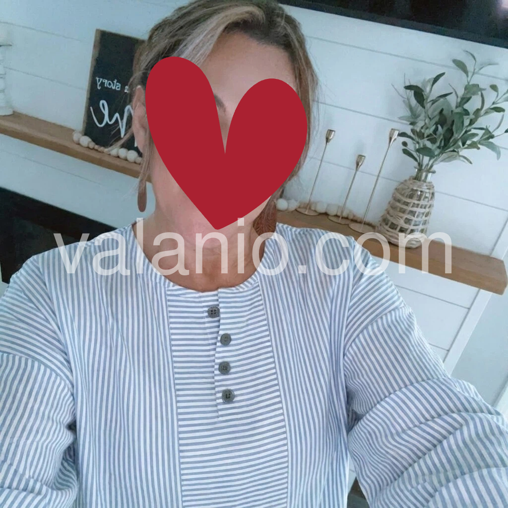 This long-sleeve top features a clean blue-and-white vertical stripe pattern with a buttoned placket. The relaxed fit and wide sleeves offer comfort and ease. Soft fabric perfect for casual wear. Ideal for pairing with jeans or pants. Simple, modern, and effortlessly chic.